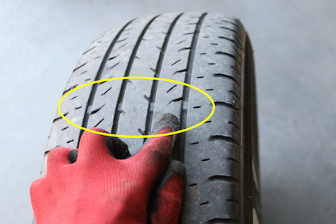 突起部分がタイヤの表面に出てきたら、溝が無いという状態!