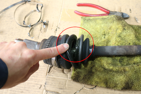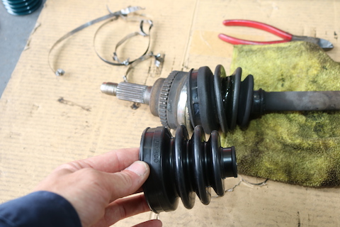 交換中に見つけた、ドライブシャフトブーツが破れていたので、