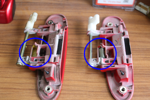 ハンドル裏部分のスプリングが取れていました。