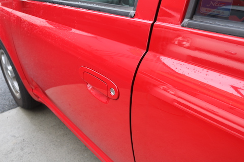 右後ろドアは閉まっていますが、ドアハンドルが少し浮いています。