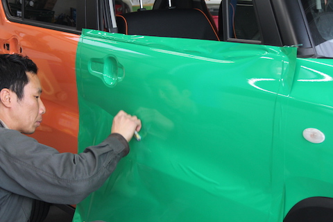塗装せずに、ラッピングシートを車のボディに貼り付けることで色を変える新しい遊び方なのです