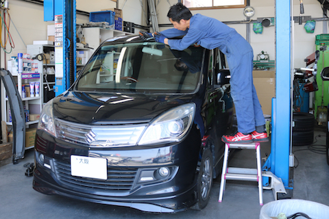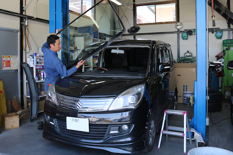 大阪府枚方市よりスズキ ソリオのお客様、フロントガラスの飛び石被害でご来店。