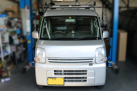 奈良県より仕事車として活躍するエブリィのお客様、フロントガラスが割れてしまったとご来店。