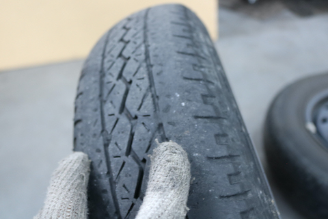 タイヤはスリップサインがでてきているのと、角の溝がありません。