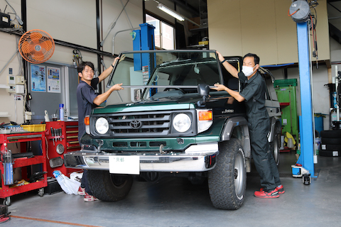 70系ランドクルーザー、社外品フロントガラスで交換!