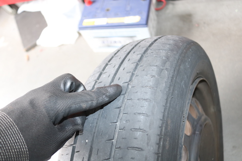 タイヤの溝が検査基準1.6mm以下で、こちらも車検に合格しないので交換になりました。