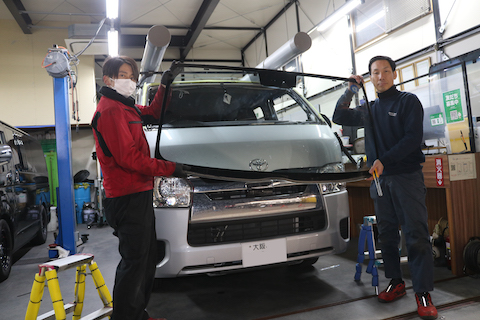 ハイエースのフロントガラスを社外品で対応!