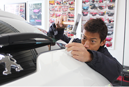 愛車はお客様にとっての「宝物」。その宝物である愛車を僕たちに預けて頂ける。こんな嬉しい事はありません。僕たちはそんなお客様の宝物である愛車とお客様の心のへこみを同時に魂込めて治させてください。そして、必ず素敵な「笑顔」をいただきます。