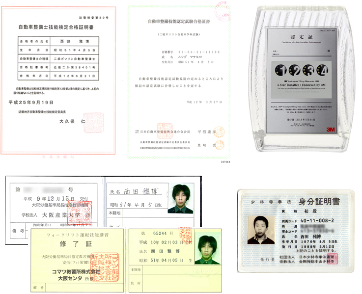 - ◎フォークリフト免許 ◎カーラッピング4Star施工技術士 ◎少林寺拳法初段