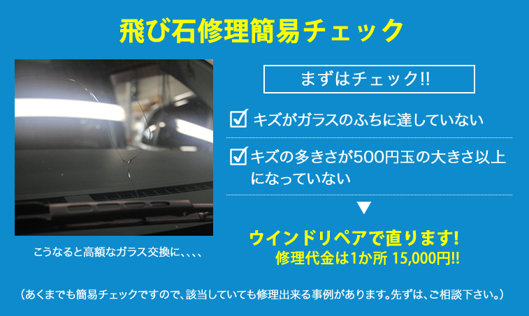飛び石によるフロントガラスの割れでお困りではないですか?