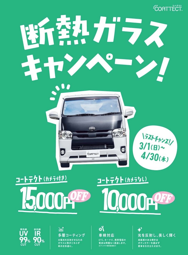 ハイエースフロントガラス交換(クールベール・ソーラーインパクト・コートテクト)