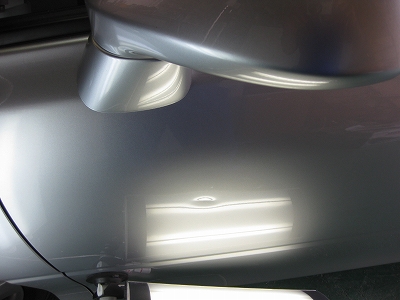 | フロントフェンダー部分にキズも伴った深めのへこみでした。 | フェンダーの内側のカバーを外せばデントリペアが問題ありません。復活です!! | |