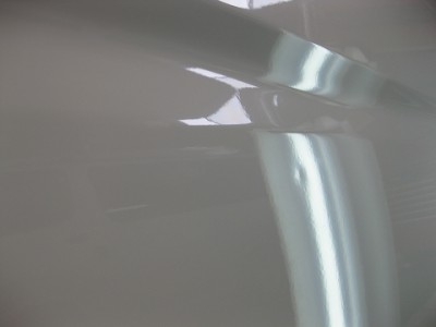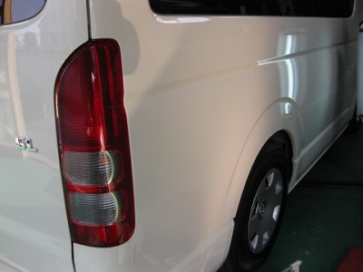 | 今回は専用の道具で、ボディー表面より引っ張ってデントリペアしました。 | 塗装肌と写りこみを確認して完成です。 | |