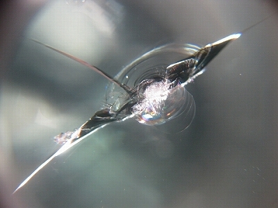 | このようなウインドガラス割れキズは早めの対処が必要となります。これで強度&見た目も格段に良くなりましたので安心です。 | |
