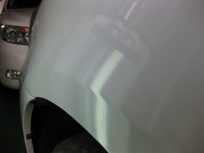 | フロントフェンダーのプレスライン部分にへこみがありました。キズも伴い、相手の車の塗料もべっとり付いてありましたので、軽く研磨剤とポリッシャーを使い磨かせて頂きました。この場合はきっちり作業前にオーナー様にご説明させて頂き、了解頂いてからの作業となります。 | いい感じに仕上がりました。キズもなくなり、潰れたプレスラインも復活ですね。 | |