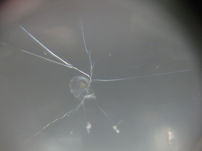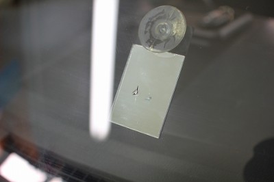 | フロントガラスの飛び石による割れ。ウインドガラスリペアのご依頼でした。 | ||