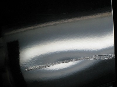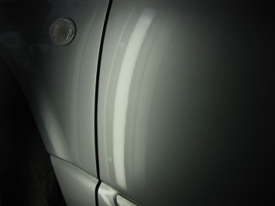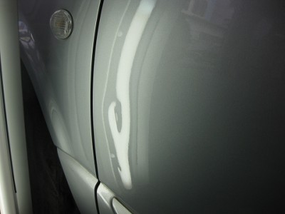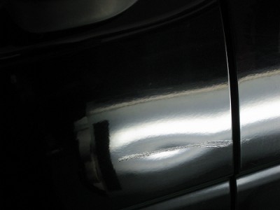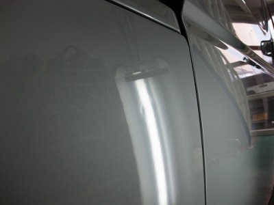 | ボディの表から引っ張り、そして叩いて(専用工具)塗装肌を合せて根気良く デントリペアさせて頂きます。 | きっちりへこみが元に戻りました。オーナー様にはもの凄く喜んで頂けました。 |