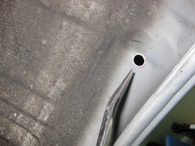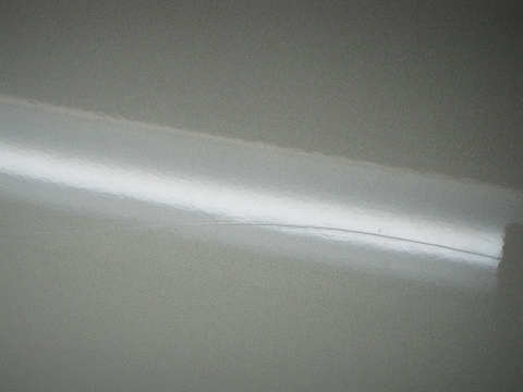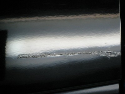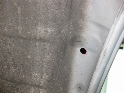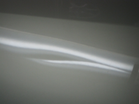 | 縦にへこみ、そして横にも擦ったような形でへこんでいました。 そしてその下にもへこみがありました。 | この場所はちょうどサイドビーム(補強部分)とヒンジ部分が重ねっている場所。 細いデントリペアツールを滑らせて上手く入れれば、難なくアクセスが可能です。 ご安心下さい。 | |