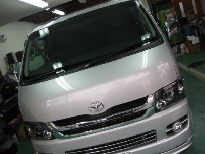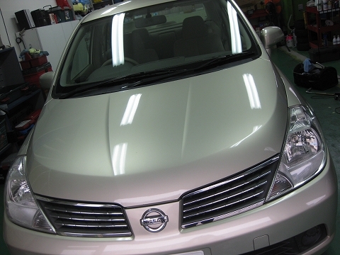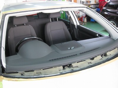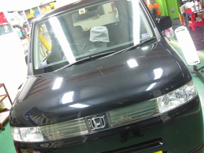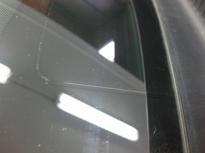 | オーナー様の為、あっ!!怖いなぁ~何て言ってられません。 何としてもオーナー様の笑顔を頂く。これが当店の営業主旨であります。 | 1時間後には無事にウインドリペアの終了です。 キズも伸張する事なく、強度もグンッと上がりました。 | |
