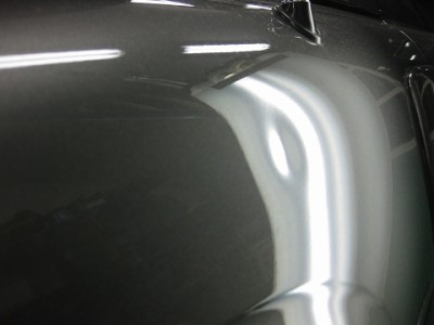 | 車の多くはリヤフェンダー部分は鉄板が二重構造になっている場合があります が、MR-Sはリヤフェンダーはインナーカバーを外せば難なくデントリペアツール が入りますのでご安心ください。 | へこみの拡大写真ですが、オーナー様が知らない間にドアパンチ被害!! 酷いですよね。当て逃げによる被害は本当に許せません!! | |