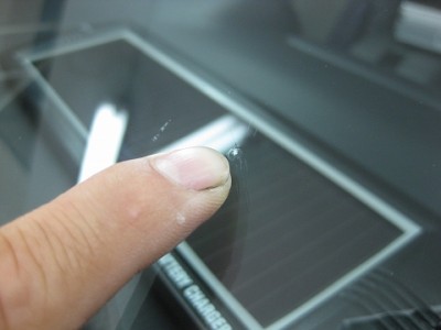| 店内でお待ち頂いている間にきっちりリペア完成です。 | 拡大するとこんな感じになります。きっちりレジン(接着剤)も入りましたのでこれ で安心ですね。 | |