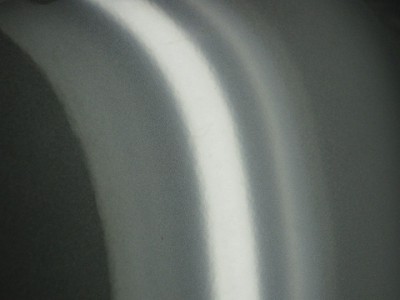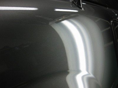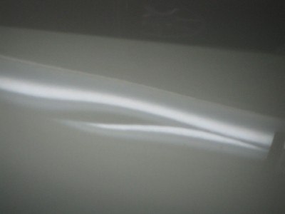 | メジャーで計ると約30cmくらいへこんでおりました。幸い鉄板の伸びもあまり無 かったので、デントリペアでのご対応させて頂きました。 | キズは残りましたが、へこみはいい感じになりましたね。 横長のへこみはデントリペアでは難易度が少し上がりますが、わたしにとっては 凄くやりがいのあるへこみでした。 | |