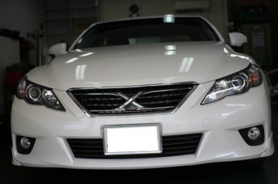 | 大阪府八尾市よりご来店のトヨタ マークX。 | ご依頼頂いたへこみは、リアドアのプレスライン部分にちょっと深めのへこみ。 | |