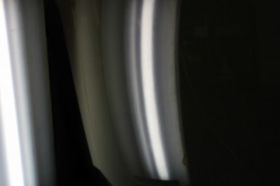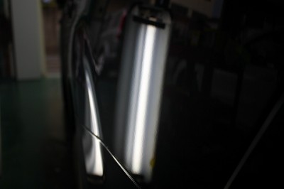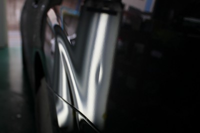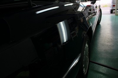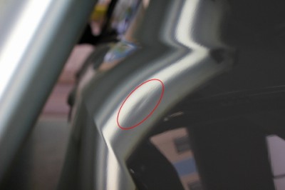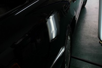 | このリヤクォーター部分の写りこみって凄く美しいので、このようなへこみがあれ ば、ショック大ですね。 | デントリペアはこのようなへこみの場合、ちょっとお待ち頂いている間に直りま す!!「マジで!!」っと思われると思いますがマジなんです。 | |