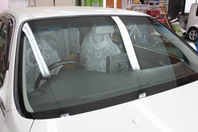 | このように伸びてしまったガラスはやはり当店でも、交換をお勧めしております。 | 今回はお客様と相談させて頂き、出来る限り修理代金をお安くという事で、輸入 のフロントガラスに交換させて頂きました。 | |