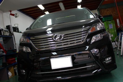 | 京都府向日市よりご来店はトヨタ ヴェルファイア!! | この場所のデントリペアでは、まずヘッドライニング(天井の内張り)を外してデン トリペアツールをアクセスしていきますが。。。 ヴェルファイアの天井の内張り脱着は結構大変な作業になるんです!! | |