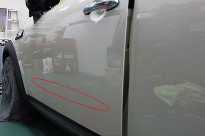 ちょっと不注意でオーナー様が洗車中にバケツを当ててしまってできたへこみ。 | |