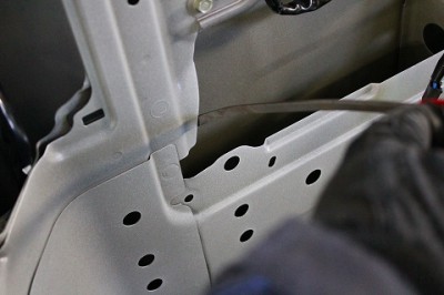 | へこみはスライドドアのドアノブ下にありました。 | ||