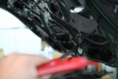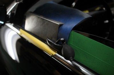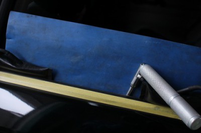 | この様な場合、フロントウインドウを下げ少しエアパットで隙間を作りデントリペア ツールを入れていきます。 | ベンツのボディはとにかく硬い。そしてアルミの材質なんです!!アルミでも デントリペアは問題なくリペアできますので、お気軽にご相談下さいませ!! | |