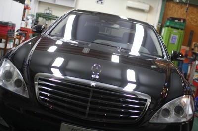 | 大阪市内よりご来店頂きました、メルセデスベンツ S600ロング。 | へこみは運転席のドア部分。 へこみは小さいけれど、かなり目立っています。 | |