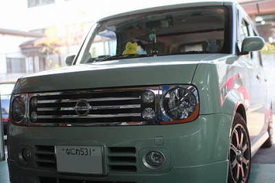 | 大阪市内よりご来店はニッサン キューブキュービック!! | へこみの場所所はフロントフェンダー部分でした。 | |