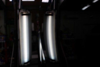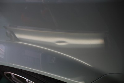 | このような凸が4ヶ所。 | 集中して凸がありました。オーナー様は数日の間にコーティングに出されるとの 事で、きっちりデントリペアさせて頂きました。 もちろん、塗装はしていません。表から出っ張っている部分を樹脂ポンチで少し ずつ落としていきます。ほんと慎重に、景色の写りこみを見ながら。。。。 | |