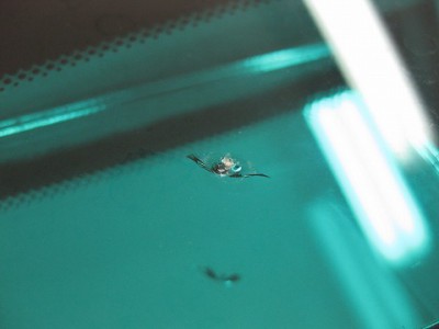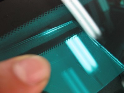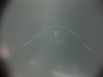 | オーナー様に喜んで頂く為に、わたくし大きな目玉をギョロっとあけて魂込めて 施術しています。 | ウインドリペア後の拡大写真です。 割れた線はどうしても残りますが、強度は格段に増しますし、見た目もかなり良く なります。車検にももちろん合格しますのでご安心下さい。 | |