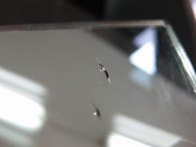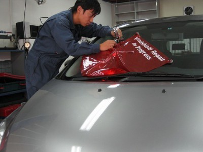 | 今にも。。。。キズが伸びそうです。怖 | 大きな石ころが当たったのでしょう~きっちりウインドリペアをするとこうなります。 | |