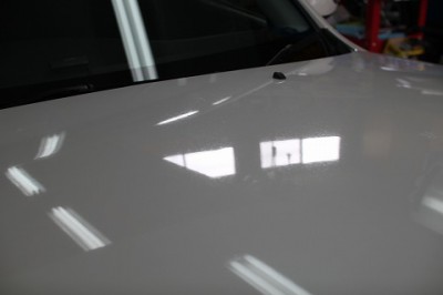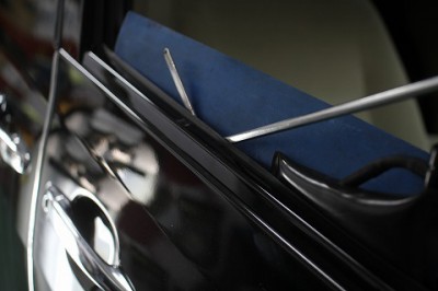 | この場合は、ガラスを下ろし、ウインドパットでガラスを保護して、エアパットを使 ってボディとガラスに1cm程度、隙間を作ります。そこから、デントリペアツール を入れて、ガラスを支点にテコの原理でへこみを裏側から押し出していきます。 | きっちり完成でございます。 少しお待ち頂いている間に終ります。 | |