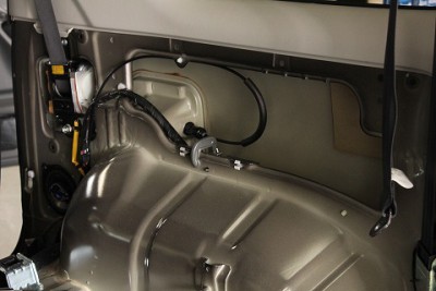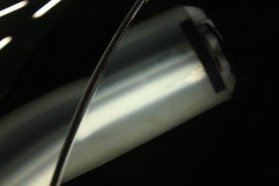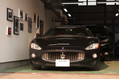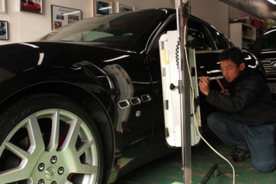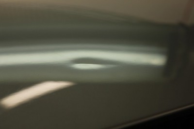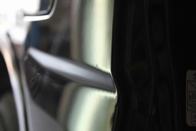 | フロントドア部分のプレスライン上のへこみでご来店いただきました、マセラティ グラントゥーリズモ!! | マセラティのフロントドアのデントリペアの場合でも、デントリペアツールは難なく入りますのでご安心下さい。 | |
