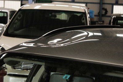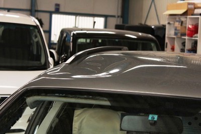 | ルーフにこのようなへこみがあると、愛車の価値が格段に下がってしまします。 そして、今回のようにデントリペアに出会わなければ板金塗装にて修理になると思います。板金塗装になれば塗装を削り、パテを入れてルーフ一面を色あわせして塗装する形になります。 |