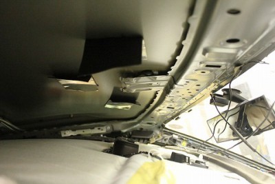 デントリペアの場合は、ルーフの内張りを外し、裏側からデントリペアツールにてへこみを直していきます。 | |