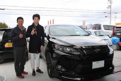 大阪府枚方市からお越し頂きました、トヨタ ハリアー。買ってまだ間もない新車に飛び石!でも、ガラス交換しないで、綺麗な修理が出来たと喜んで頂きました。