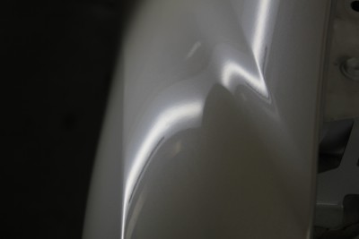 フロントドアの前側に複雑な折れ曲がったへこみがありました。