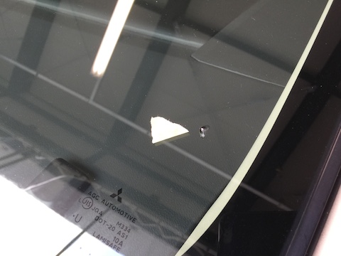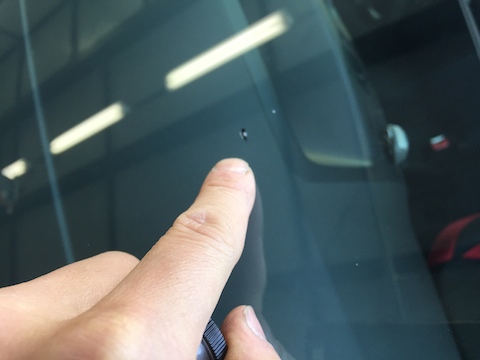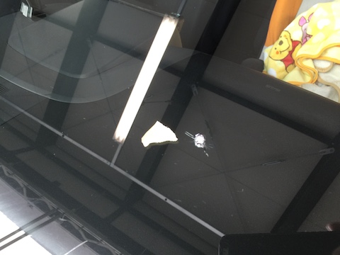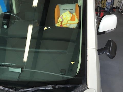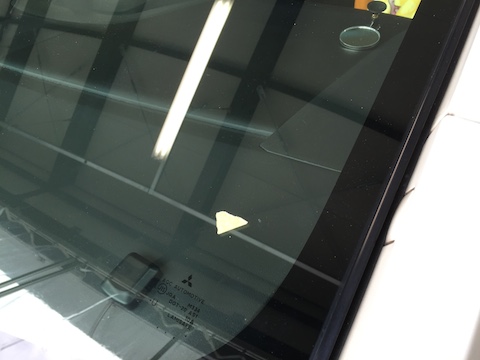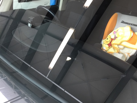 デリカD5のフロントガラスに、二箇所の飛び石被害!これは危険です、即日対応で、無事に完治いたしました!