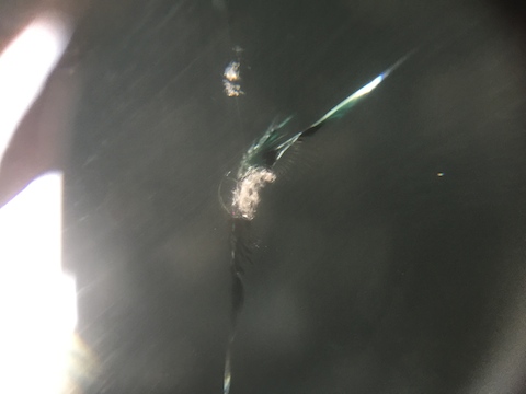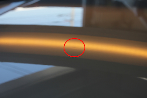 500円玉以上の大きな三日月キズ!!しかも、ガラスの端に近い場所・・・