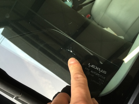 飛び石のキズは、ガラスの端に近いので、施行中に伸びるかもしれない危険なキズです。