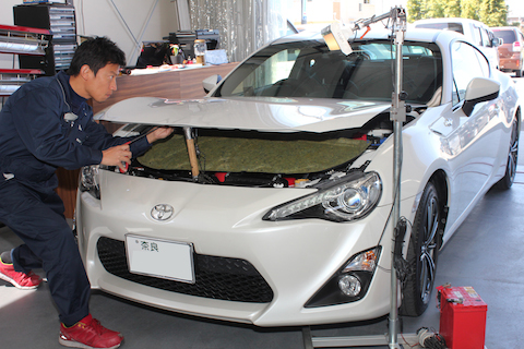 奈良県桜井市より、トヨタ86のボンネットへこみ修理でご入庫頂きました。もちろん、板金・塗装なしで直す『デントリペア』でピシッと直して、お客様に喜んでもらえました!