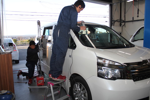 大阪府大阪市より、へこみとフロントガラス飛び石の修理をさせて頂きました。両方とも、仕上りに満足して頂けました。
