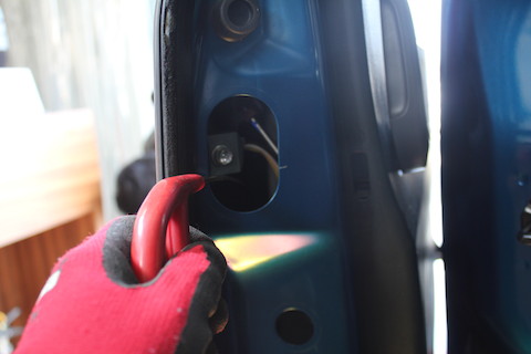 今回は、ドア横にあった穴から、へこみの裏にアクセスできました。